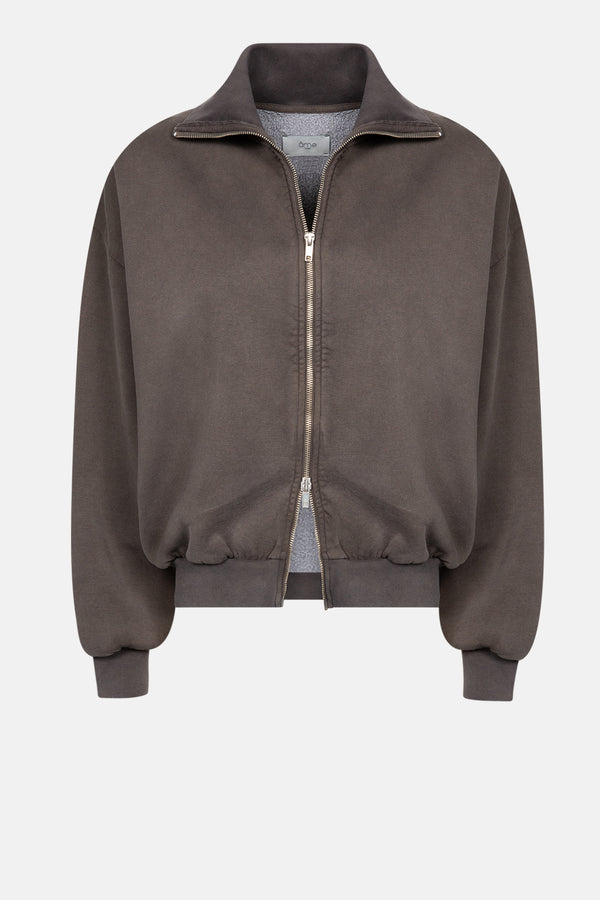 Nona Sweat Cardigan with Zip | Vintage Brown