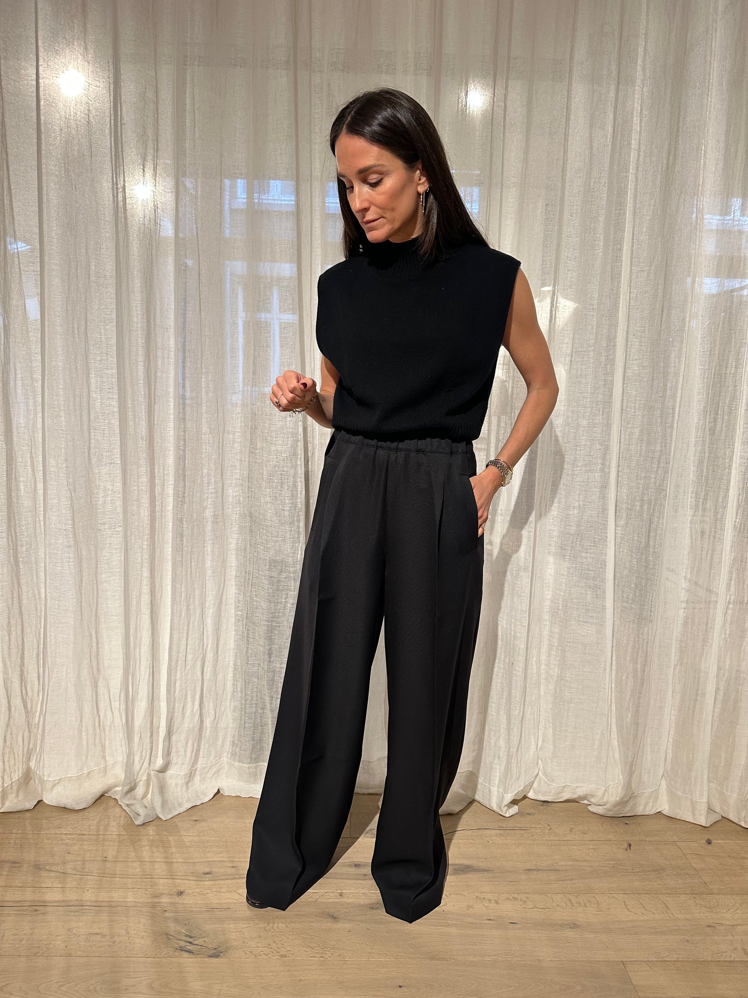 These are the Nice Wide pants in Black, which will be your go-to for the SS26 season to come. They are comfortable due to the wide-leg silhouette & the soft fabric. Style these wide‑leg trousers with a fitted top or crisp blouse for an effortlessly elegant silhouette.