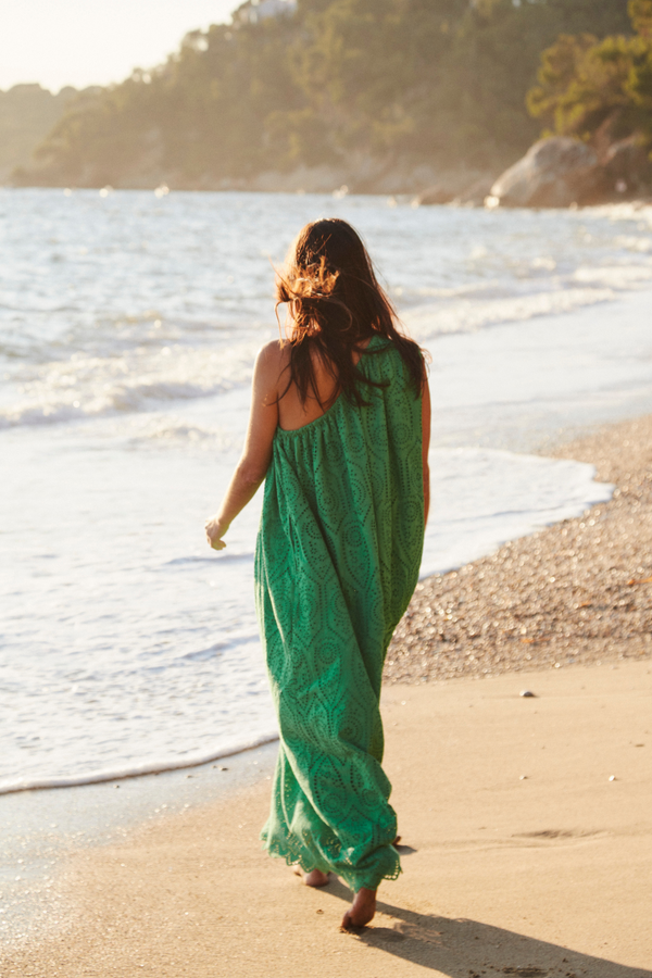 Lourose One-Shoulder Dress | Vert brodé