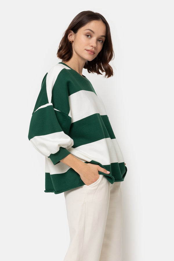 Liv Sweatshirt manches 3/4 | Rayures Vertes et Blanches