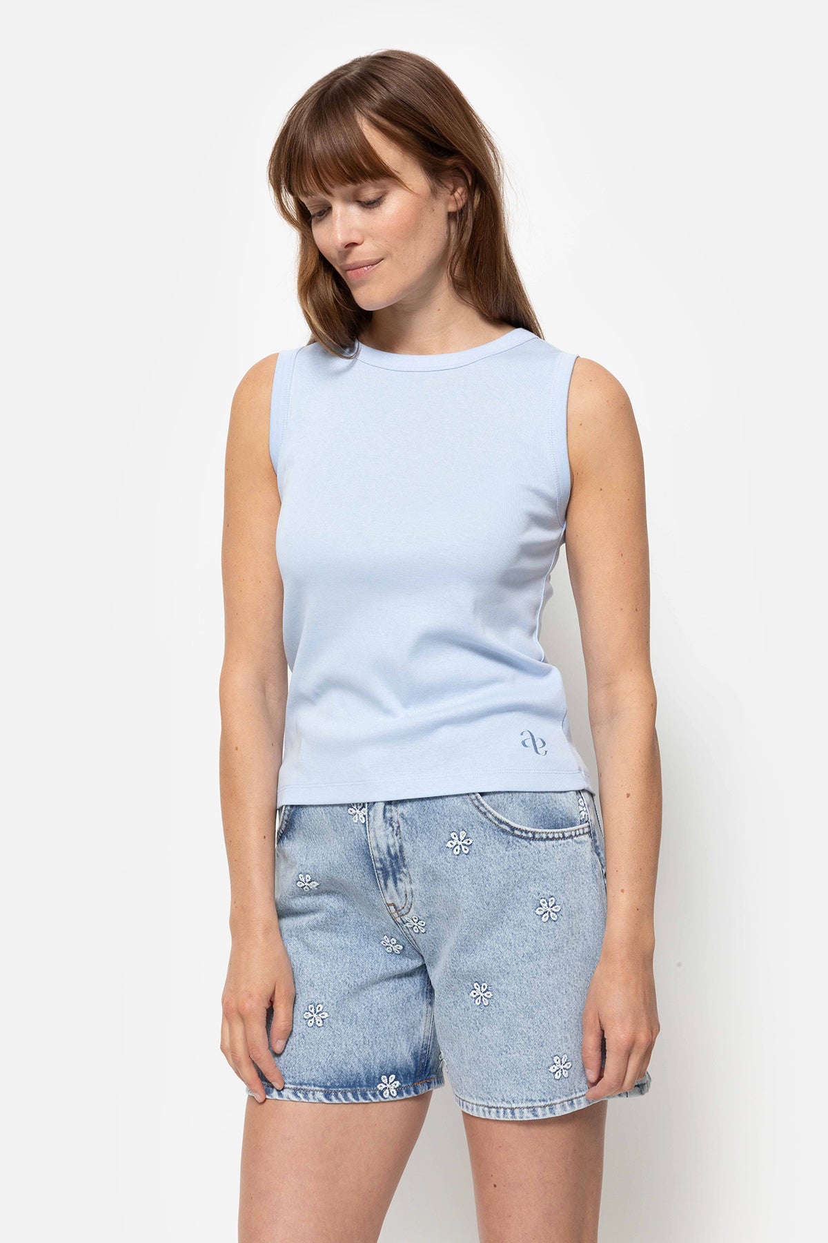 Le Débardeur Mommy en bleu bébé est un essentiel estival au caractère épuré, sublimé par une touche minimaliste et raffinée. Confectionné en 100 % coton biologique doux, il offre une sensation légère et respirante sur la peau. Pensé pour se porter aussi bien seul qu’en superposition sous une veste ou un cardigan, c’est une pièce intemporelle qui rehausse chaque silhouette avec une élégance discrète.