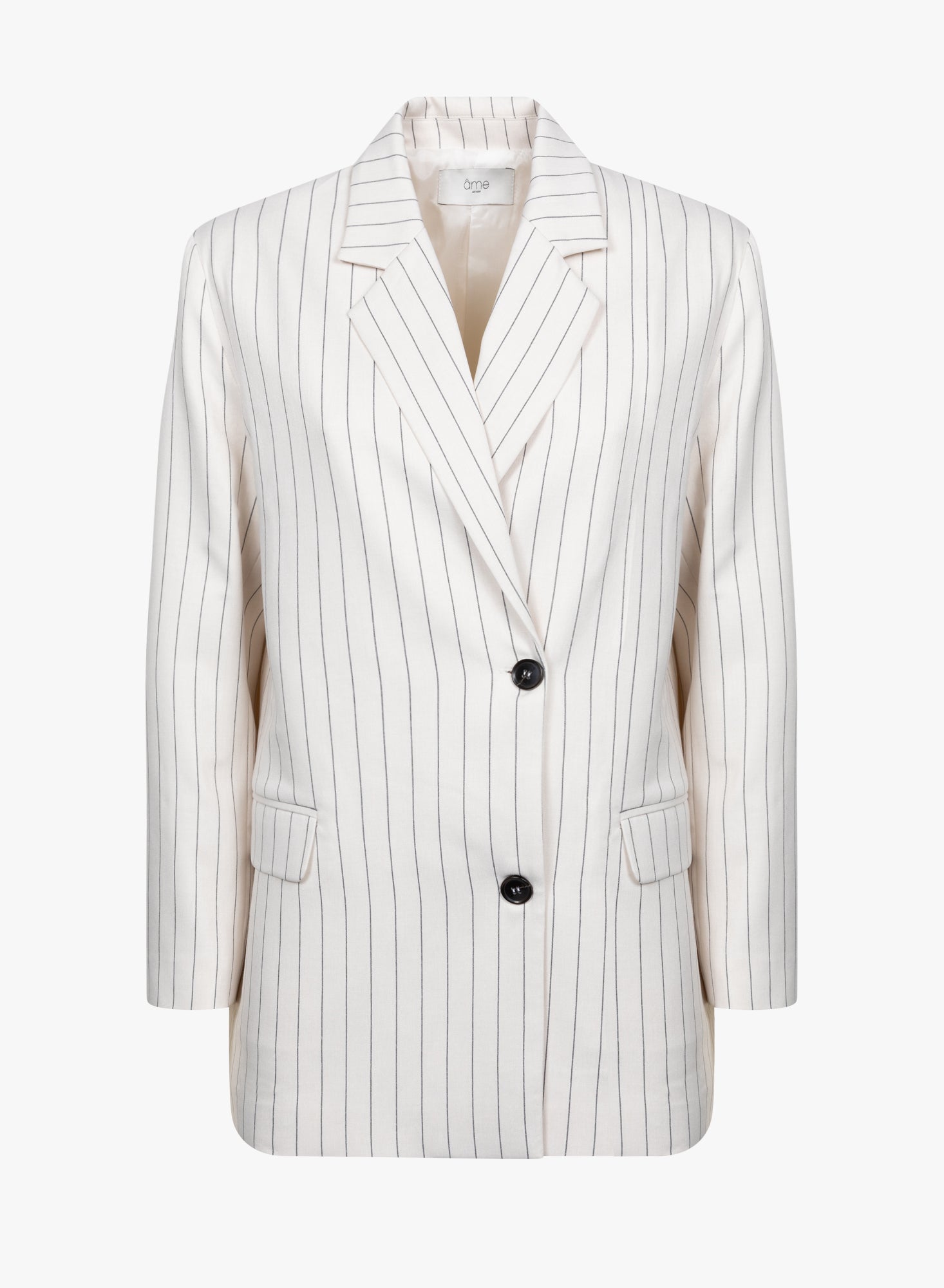 The Oversized Blazer in a White striped colour embodies timeless elegance with a modern edge. Crafted from high-quality cotton, it features an oversized fit that creates a relaxed yet sophisticated silhouette. The clean, solid design enhances its versatility, making it a must-have piece for any wardrobe. Pair it with a simple tee and jeans for a laid-back look, or style it with tailored trousers for a chic, polished appearance.